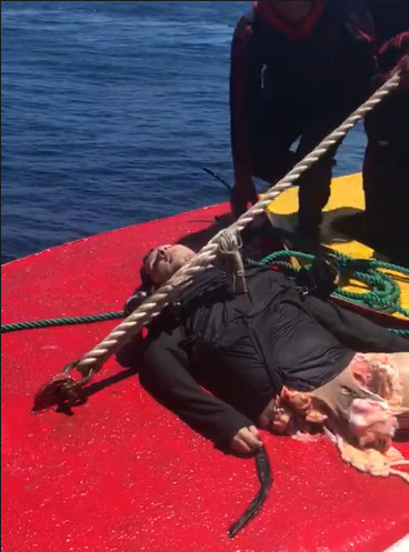 Hình ảnh từ thuyền cứu hộ cho thấy thời điểm các thuyền viên đưa nạn nhân lên boong tàu trong tình trạng nguy kịch, nhiều người xung quanh cố gắng hỗ trợ và xử lý tình huống.